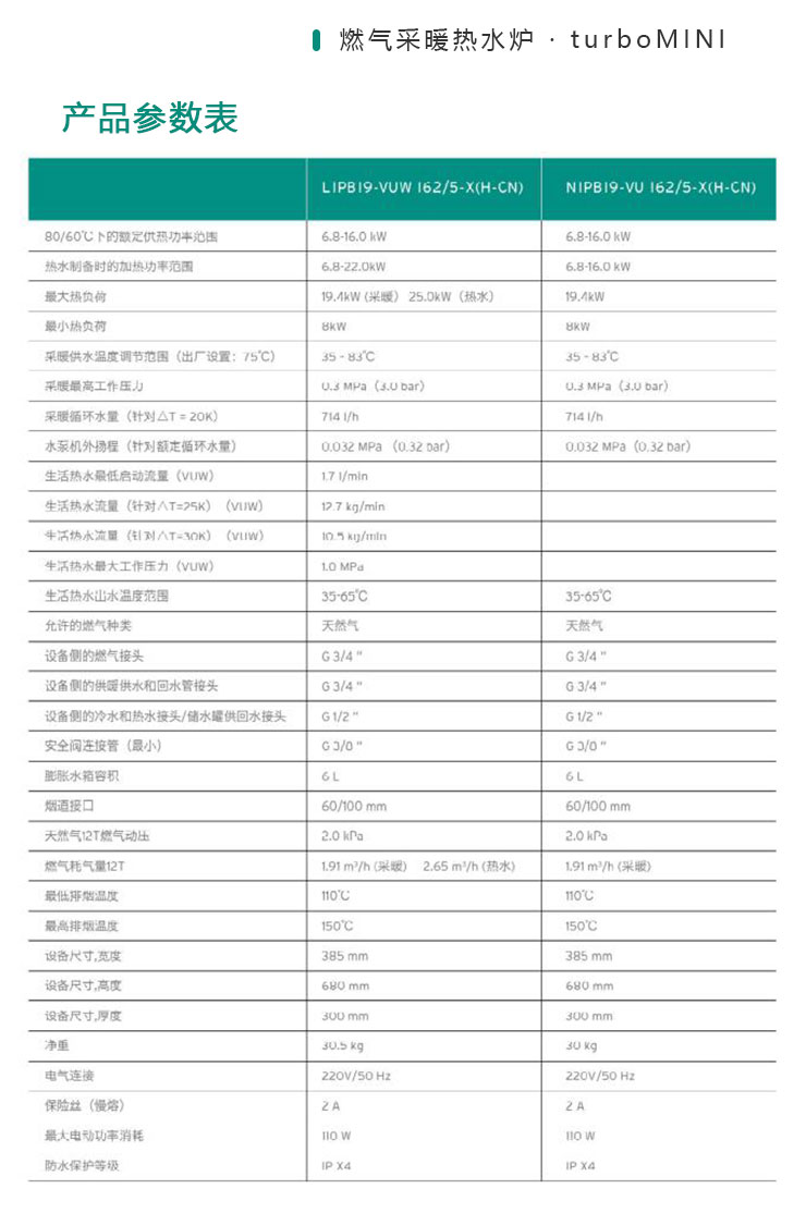威能產品詳情 turboMINI VUW/VU 迷你型燃氣采暖熱水爐