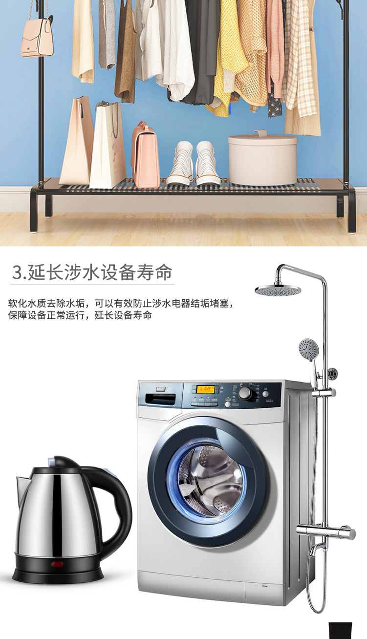 ● 圓弧桶體設計,外形美觀,在控制安裝空間前提下,有效優化儲鹽空間,延長加鹽周期,使用更方便